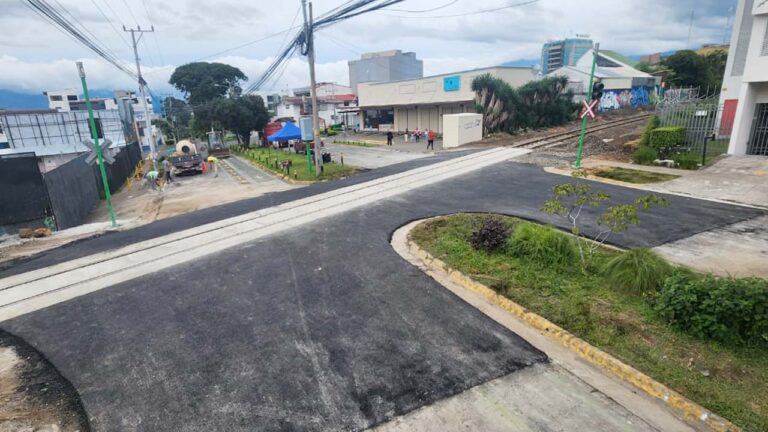 Servicio de colocación de concreto premezclado y asfalto para la reconstrucción de tres pasos a nivel para vías ferroviarias en Tibás, San Pedro y Cartago.